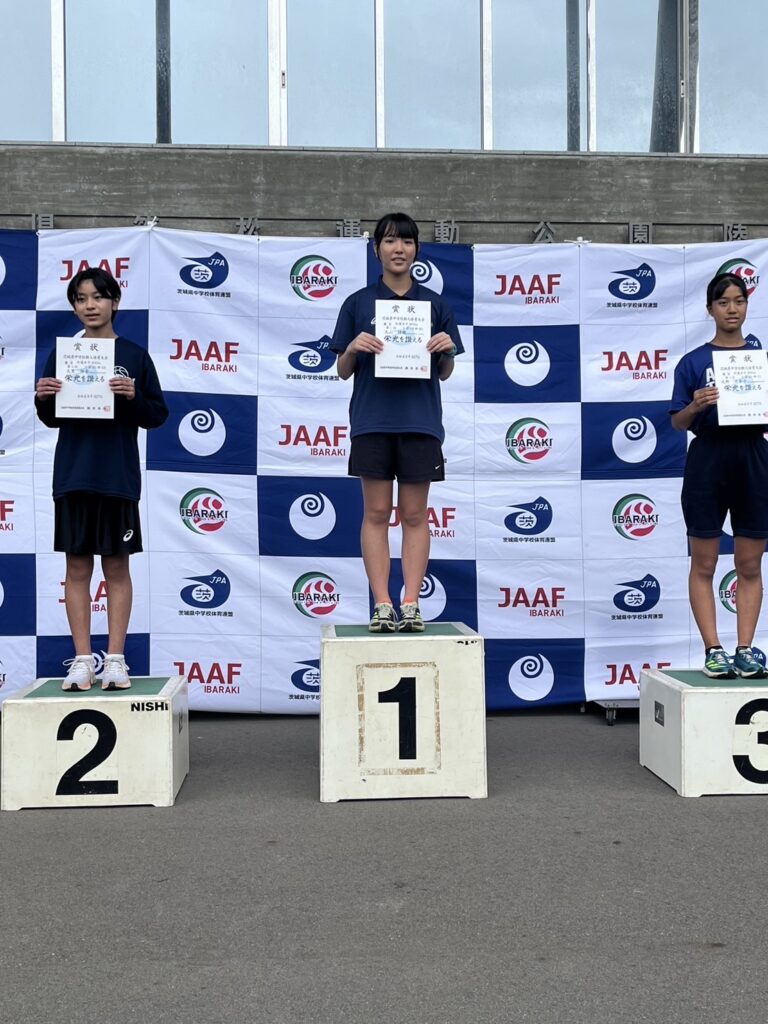 9月26日、27日に水戸信用金庫スタジアムで行わた茨城県中学校新人体育大会陸上競技の部、共通女子800mにおいて本校2年大山詩織さん(リリーベール小出身)が見事初優勝を飾りました。