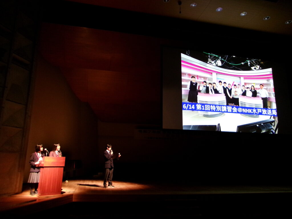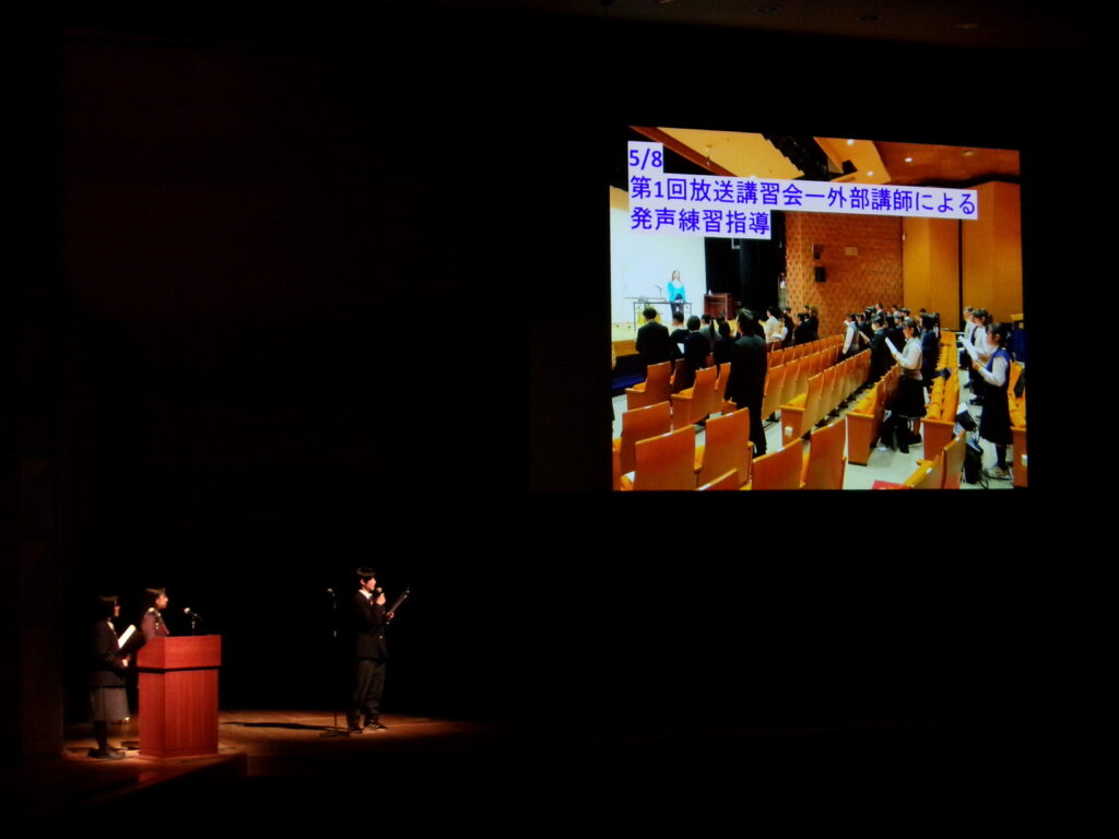 4年に1度の「放送部会」の紹介は1年生の穐山君が引き受け、これまでにない見事な発表を披露してくれました。およそ3分弱の短い時間に全神経を研ぎ澄まし、精魂を傾ける。その傍らで、PC操作を担当した2年生の猪野さんが、絶妙なタイミングでスライドの写真を入れ変えアシストする。2人の阿吽の呼吸が奏功し、放送部会の紹介を無事に終えることができました。