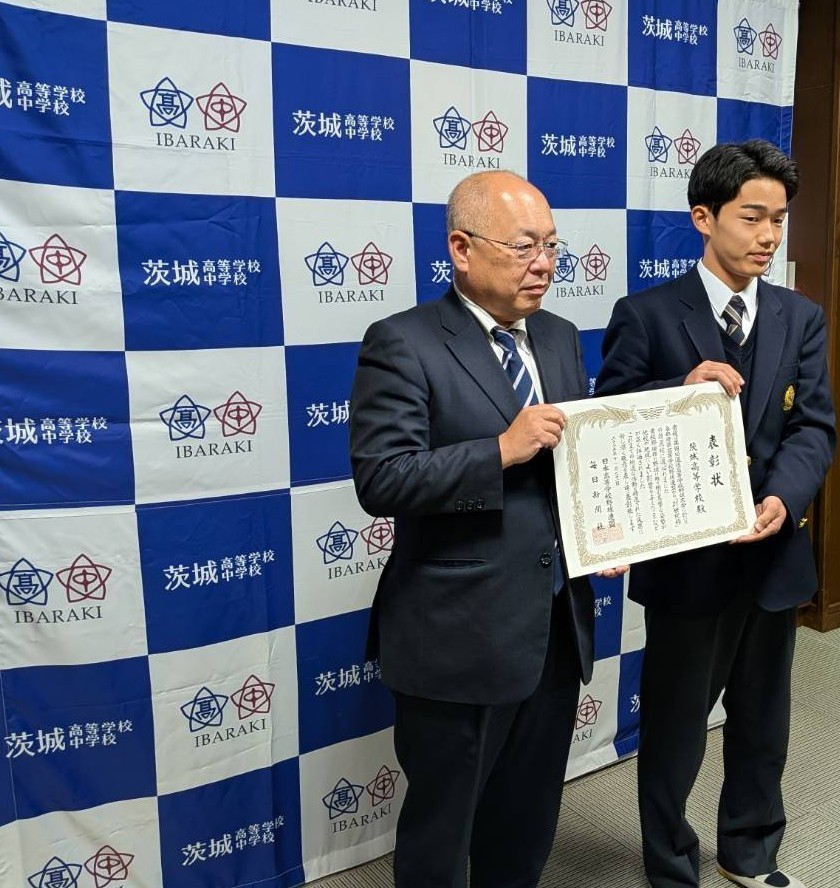 当日は、深谷 靖 茨城県高野連会長、榎戸 努 茨城県高野連専務理事、松下 英志 毎日新聞社水戸支局長の3名を迎え、表彰を賜りました。