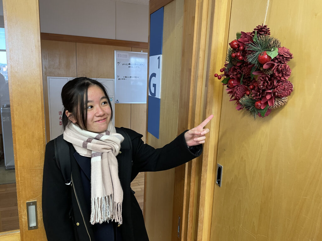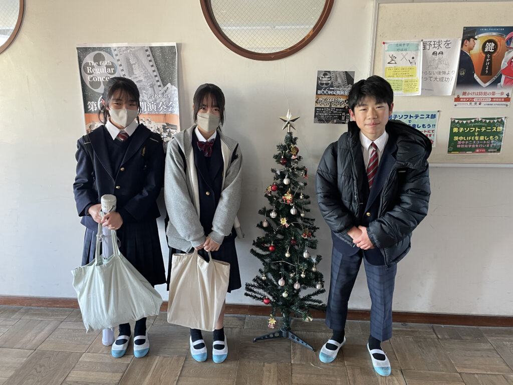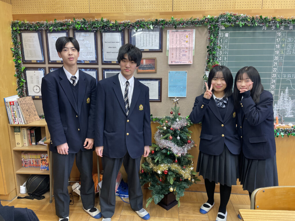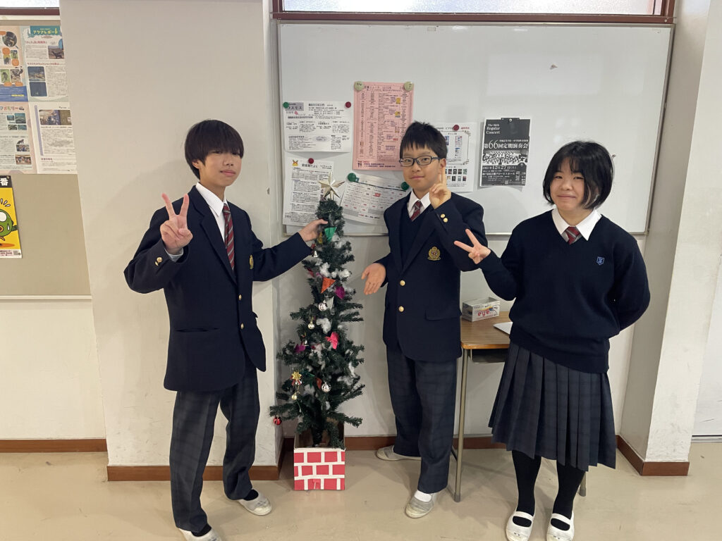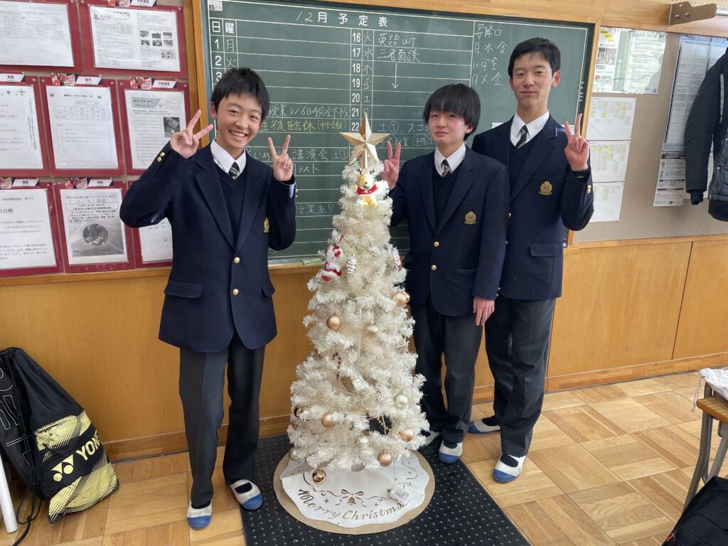 2025年も残りわずか。明日はクリスマスイブです。校内のあちこちにクリスマスツリーが飾られています。クリスマスツリーの前では、皆自然と笑顔になるようです。