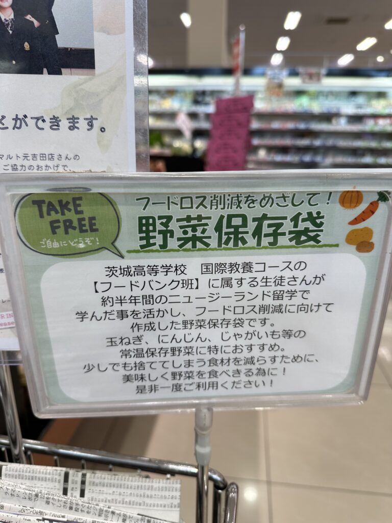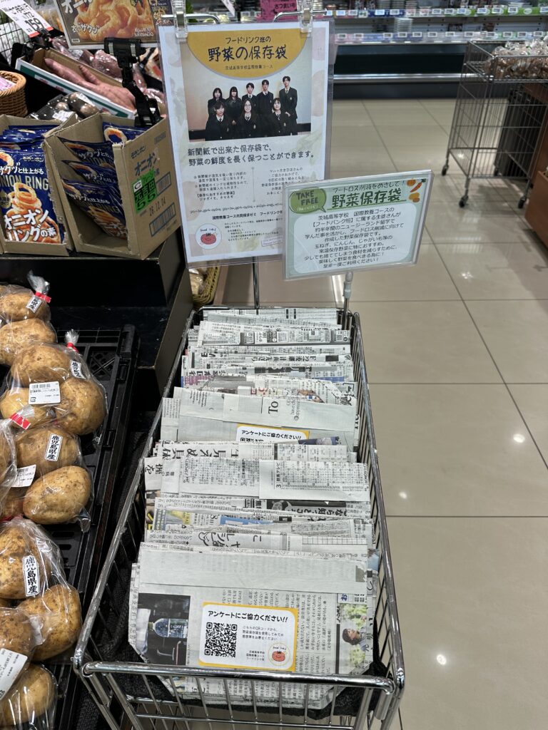 【国際教養】スーパーマルト(元吉田店)様にて、新聞紙製野菜袋を設置していただきました!