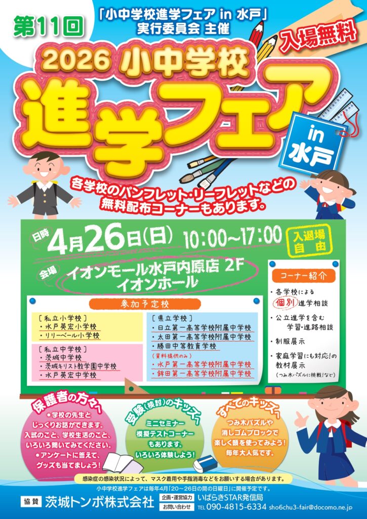 ●4/26(日)10:00~17:00 イオンモール水戸内原店2階「イオンホール」にて(入場無料)