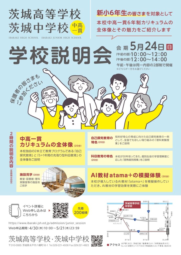 【小6対象】茨城中学校「学校説明会」(5/24日)の開催及び申し込みについて