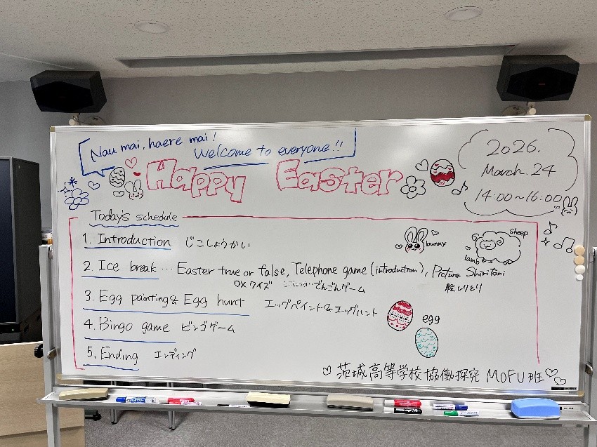 3月24日(火)、常陸大宮図書館にて、茨城高校国際教養コースMOFU班(Make Opportunities for Us)のメンバーが、英語を使ったイースターイベントを開催しました。当日は常陸大宮市在住の5人の小中学生が参加し、留学を経験した高校生たちが様々なアクティビティを通して、地元の子供達に英語を教える機会を持ちました。