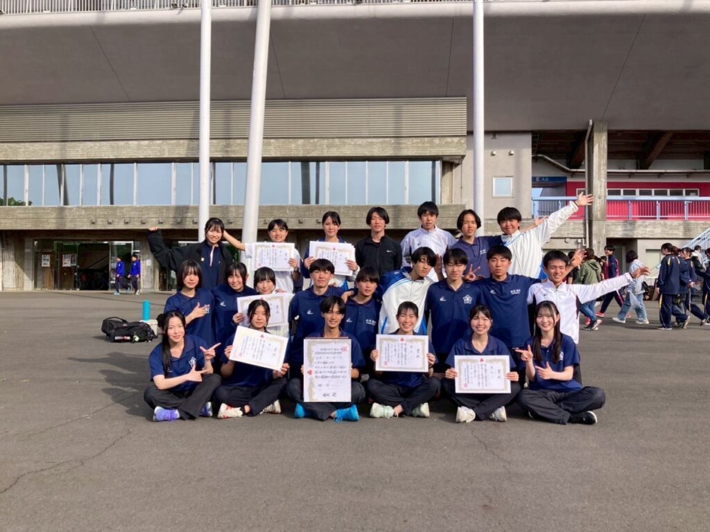 4月24日から26日の日程で行われた水戸地区高等学校陸上競技大会に参加してきました。この大会は8位入賞とプラスアルファ、各種目の地域枠に入れば県大会に進める大会です。本校からはマネージャーを含む男女22名が参加しました。今年のチームは雰囲気が良く、全員で自己新を狙い、全員で応援し、全員でサポートする、「陸上競技は個人競技であって、団体競技」と顧問が常々言っている言葉を体現したチームでした。3年生のチームワークの良さが後輩にも良い影響をあたえてくれていると思います。その良い流れに乗り、女子は全員入賞、女子総合では3位入賞を果たしました。